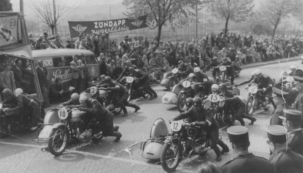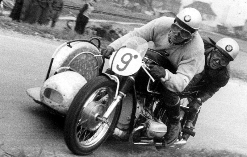 Karl Schwär, Berthold Heine und ihr R 51 Renngespann in Singen Hohentwiel 1953