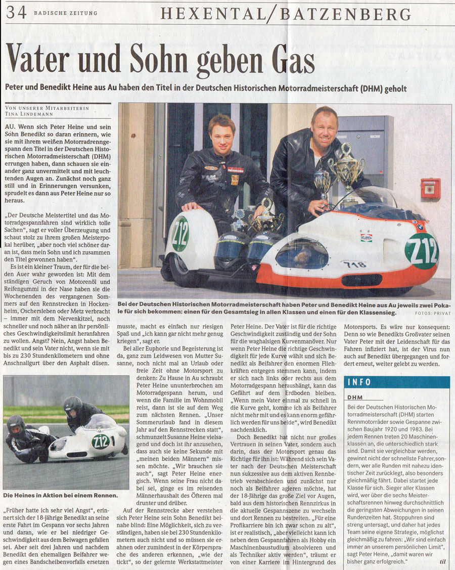 In dieser Konstelation war Friedel Reinhardt einer der letzten Fahrer die diesen Motor mit Erfolg einsetzten. Bis zum Ende der Saison 1979 gelangen so noch Siege über die damals überlegenen Zweitakt König und Yamaha getriebenen Gespanne. Über einen Umweg, der über einen Sammler in der Schweiz führte, gelang das Motorrad Mitte der achtziger Jahre zum Gespann- Beifahrer Ralf Engelhardt.